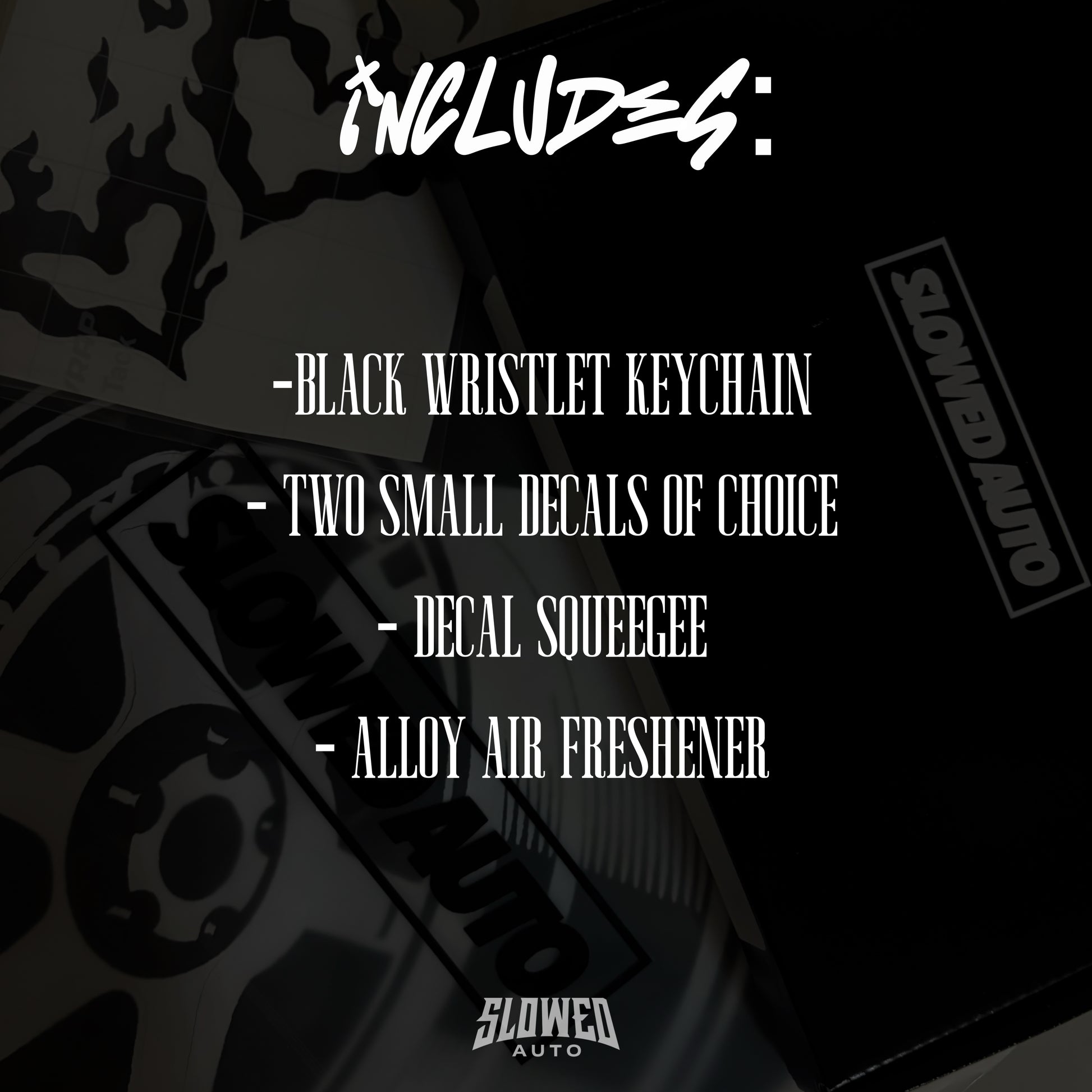 Upgrade your car game with the Slowed member box. Featuring decals, a decal applicator, a keychain, and an air freshener, this box is perfect for any car enthusiast. Spruce up your ride and show off your membership with style.π πΒ