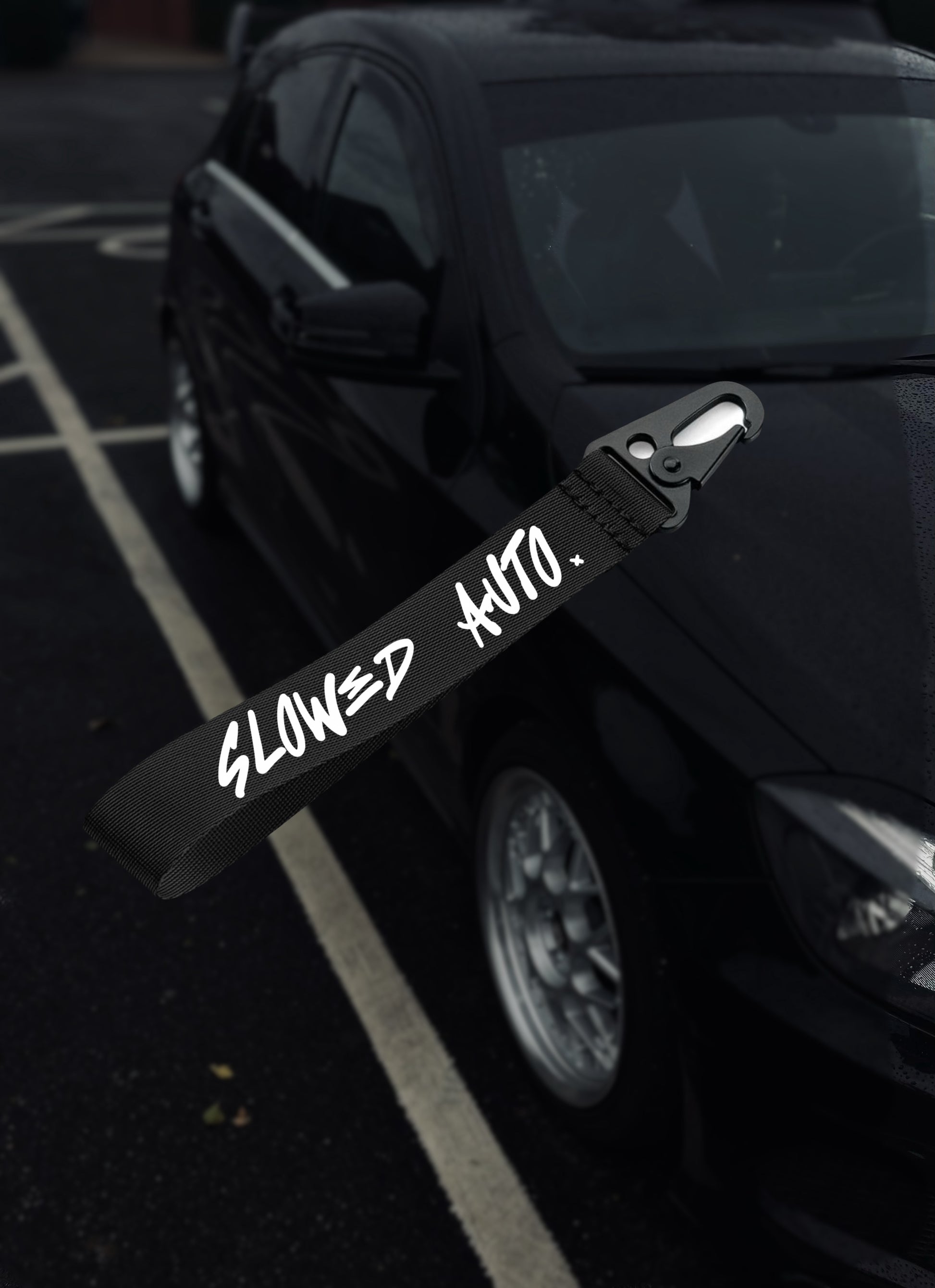 The SLOWED wristlet keychain is a must-have accessory for any SLOWED fan. Featuring the iconic Slowed logo, this keychain makes a stylish addition to any set of keys. Keep your keys securely in place while showcasing your love for the brand. Perfect for yourself or as a gift for a fellow SLOWED enthusiast.