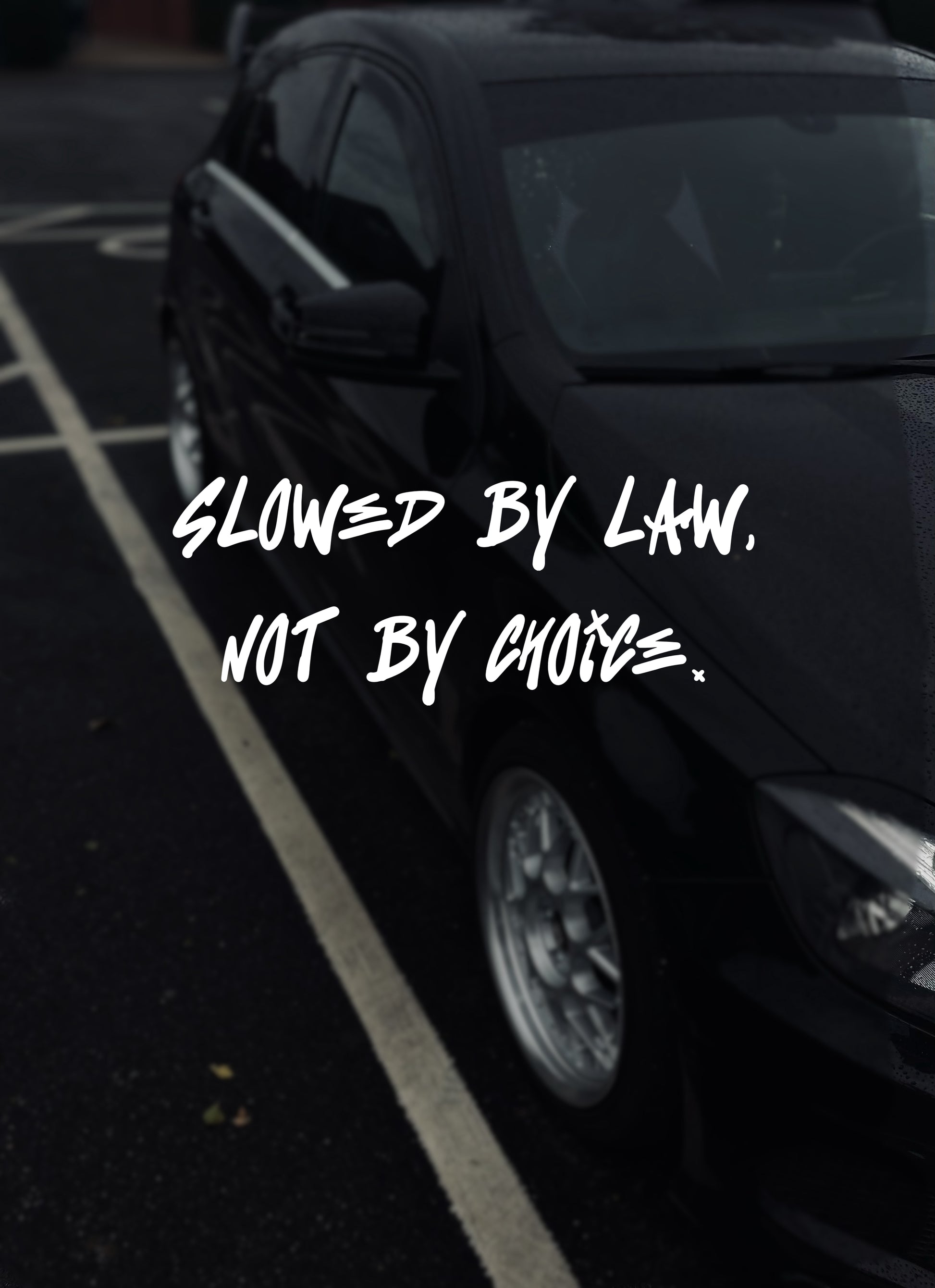 This ‘SLOWEDBYLAW’ decal sticker is made with high-quality vinyl and is perfect for any car. Enhance your vehicle's appearance with the 'SLOWEDBYLAW' decal sticker.